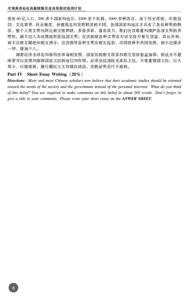 武汉大学2012年考博英语真题 打印版 套装专供(8)
