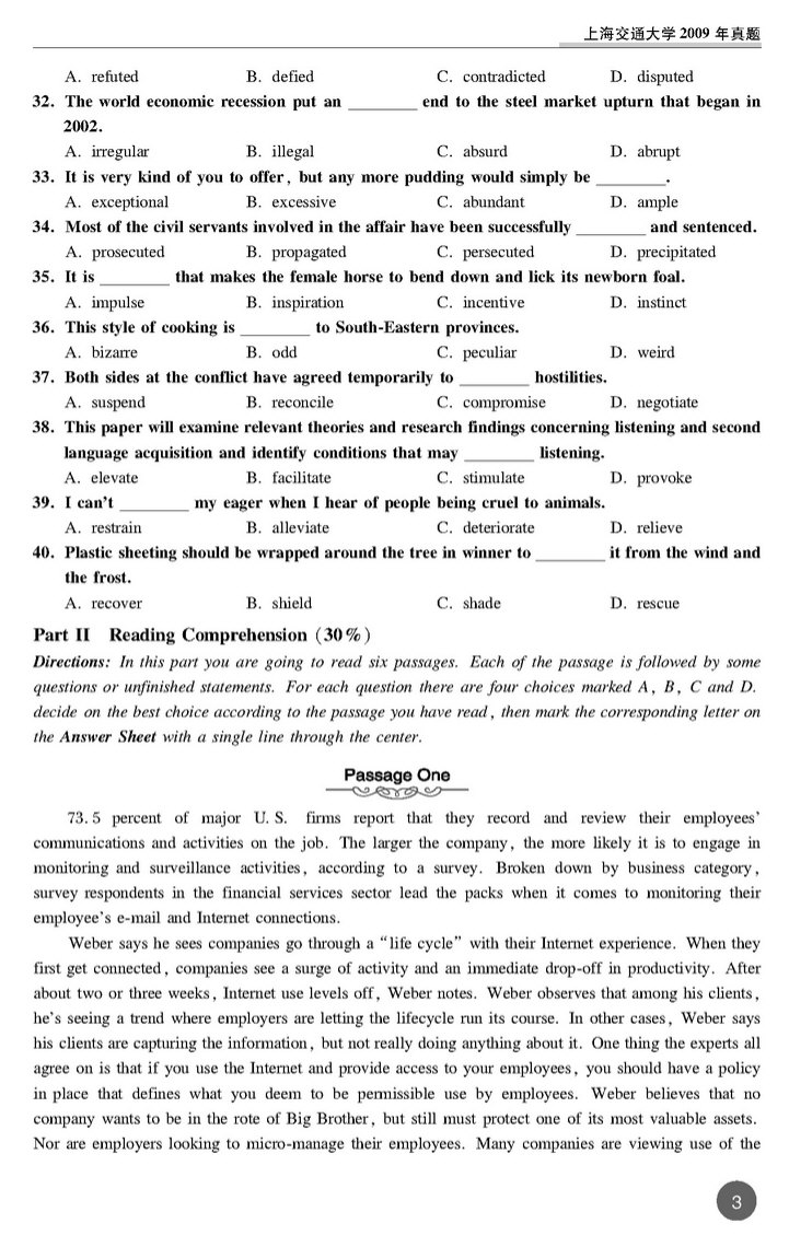 上海交大2009年考博英语真题 打印版 套装专供(3)