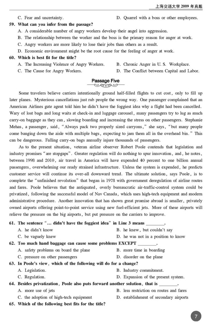 上海交大2009年考博英语真题 打印版 套装专供(7)