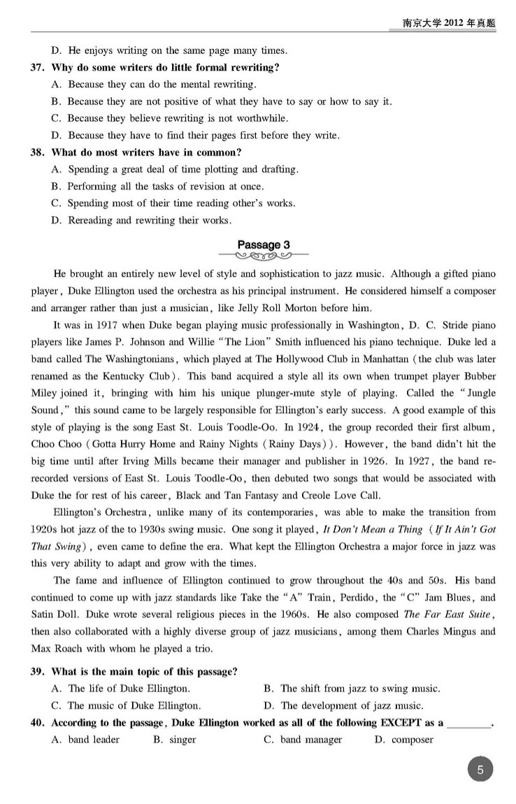 南京大学2012年考博英语真题 打印版 套装专供(5)