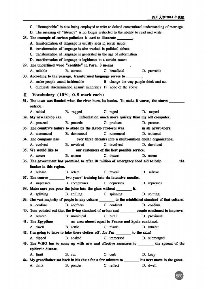 四川大学2013-2015年考博英语真题和答案(26)