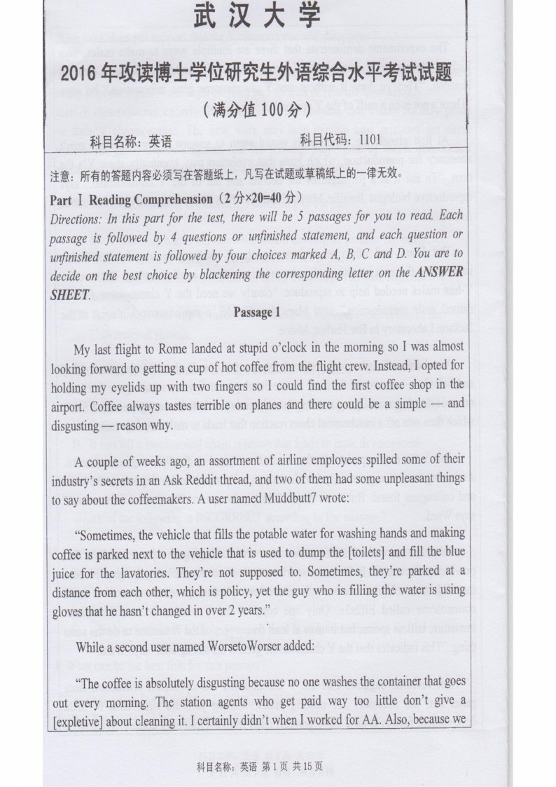 武汉大学2013-2017考博英语真题带答案(11)