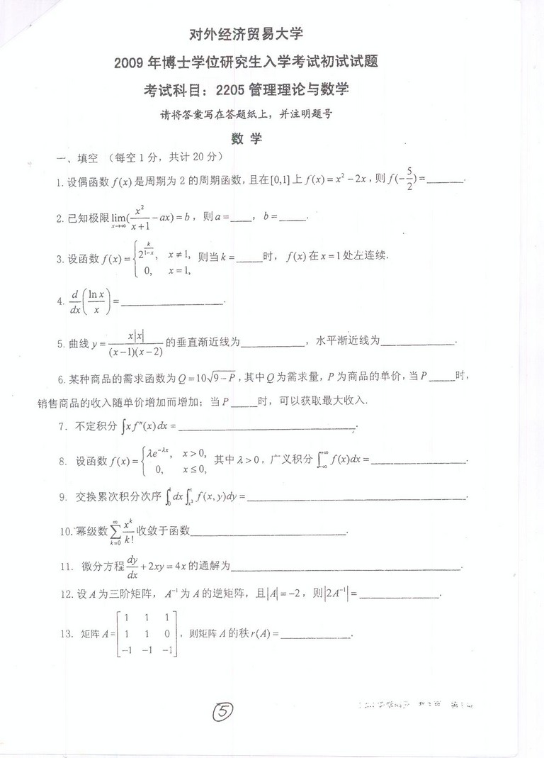 对外经济贸易大学考博真题2007-2017年 管理学基础2202或2203(16)
