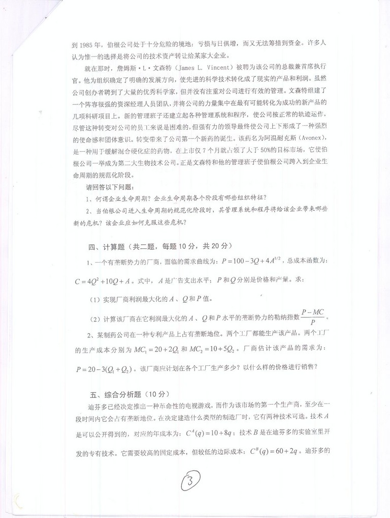 对外经济贸易大学考博真题2007-2017年 管理学基础2202或2203(21)
