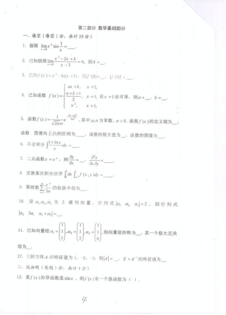 注意:本试题所有答案,应按试题顺序写在答案纸上,不必抄题,务必写清题号。