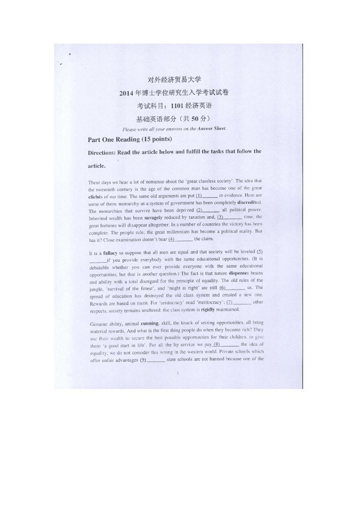 对外经济贸易大学考博英语2005-2017真题+答案解析(101)
