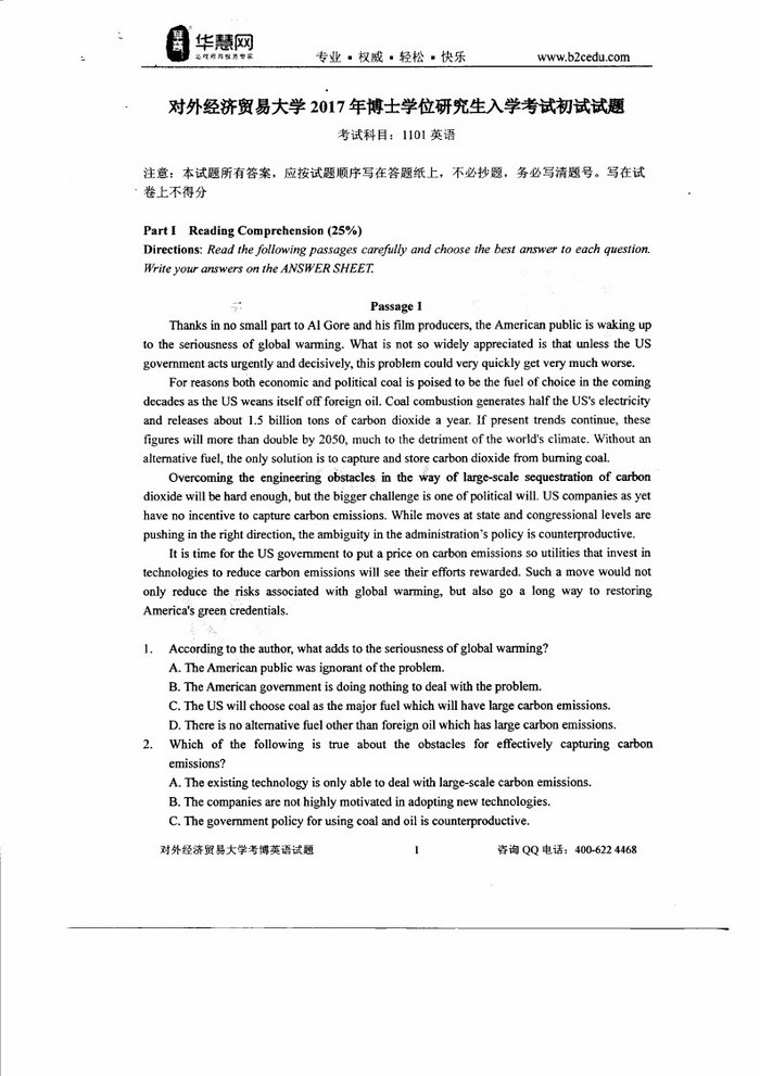 对外经济贸易大学考博英语2005-2017真题+答案解析(109)