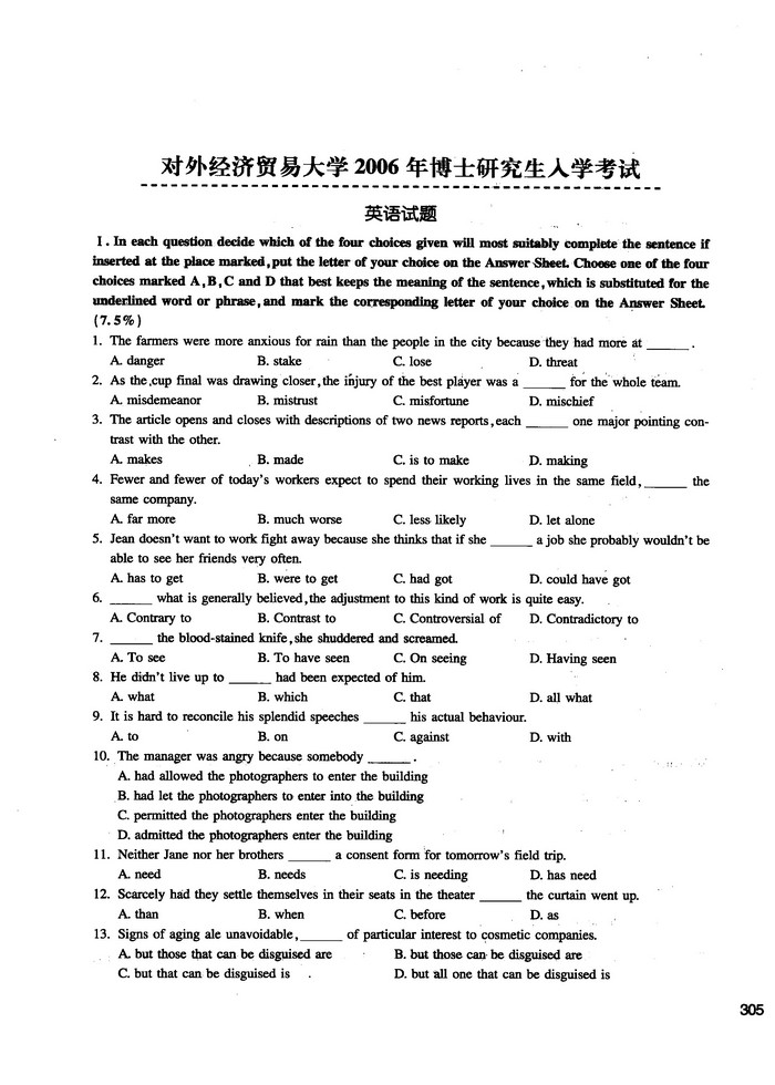 对外经济贸易大学考博英语2005-2017真题+答案解析(11)