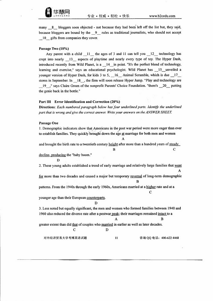 对外经济贸易大学考博英语2005-2017真题+答案解析(119)
