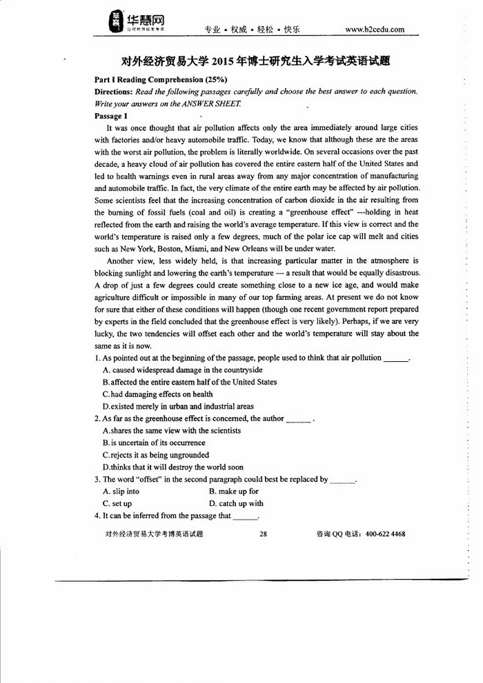 对外经济贸易大学考博英语2005-2017真题+答案解析(163)
