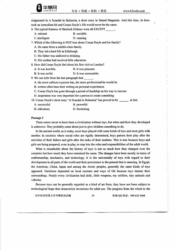 • 对外经济贸易大学2009-2014考博英语真题和答案详解