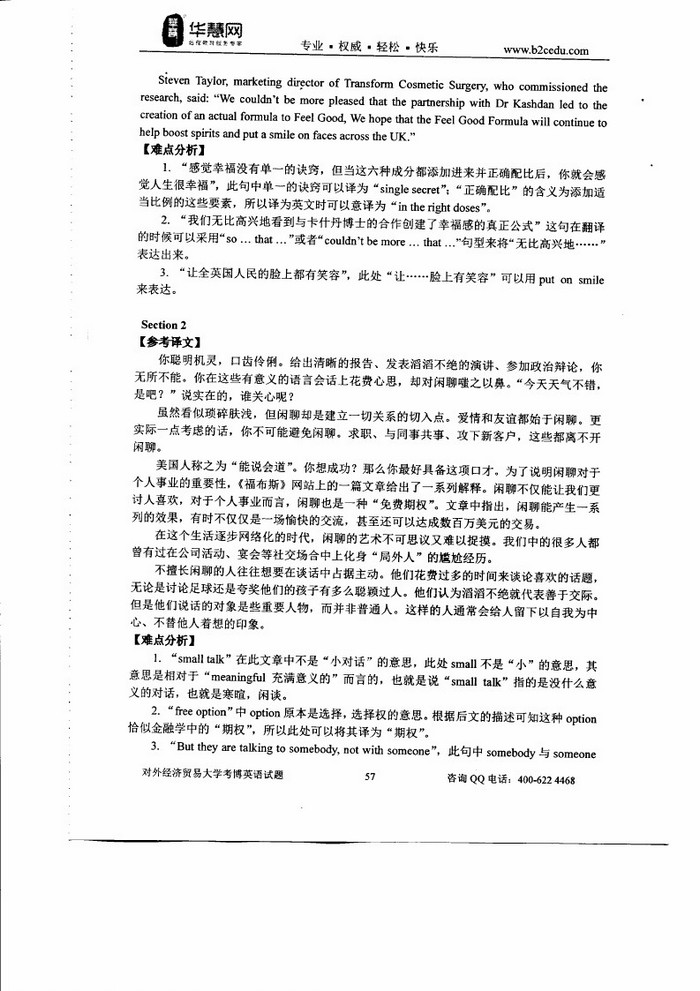 • 对外经济贸易大学2009-2014考博英语真题和答案详解