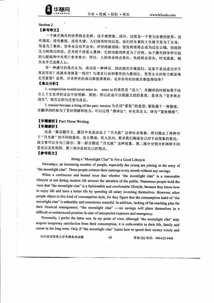 • 对外经济贸易大学2009-2014考博英语真题和答案详解