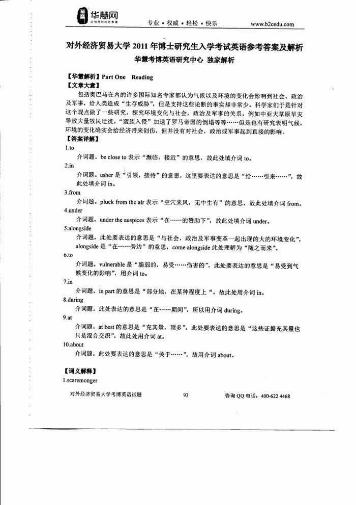 • 对外经济贸易大学2009-2014考博英语真题和答案详解