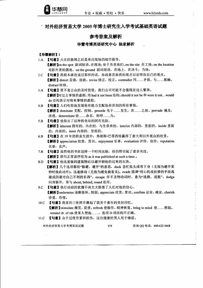 对外经济贸易大学考博英语2005-2017真题+答案解析(7)