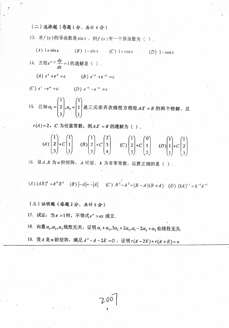 对外经济贸易大学2017,2015-2004经济学基础与数学考博真题(10)
