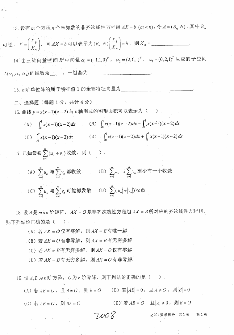 对外经济贸易大学2017,2015-2004经济学基础与数学考博真题(13)