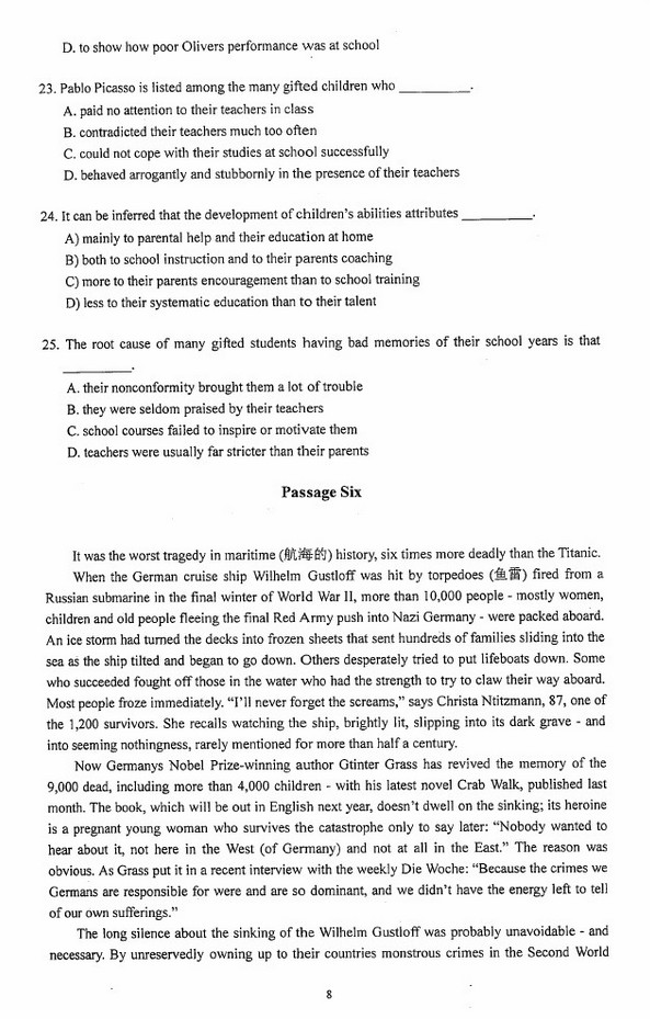 • 中央民族大学考博真题英语2005-2008真题2011题型