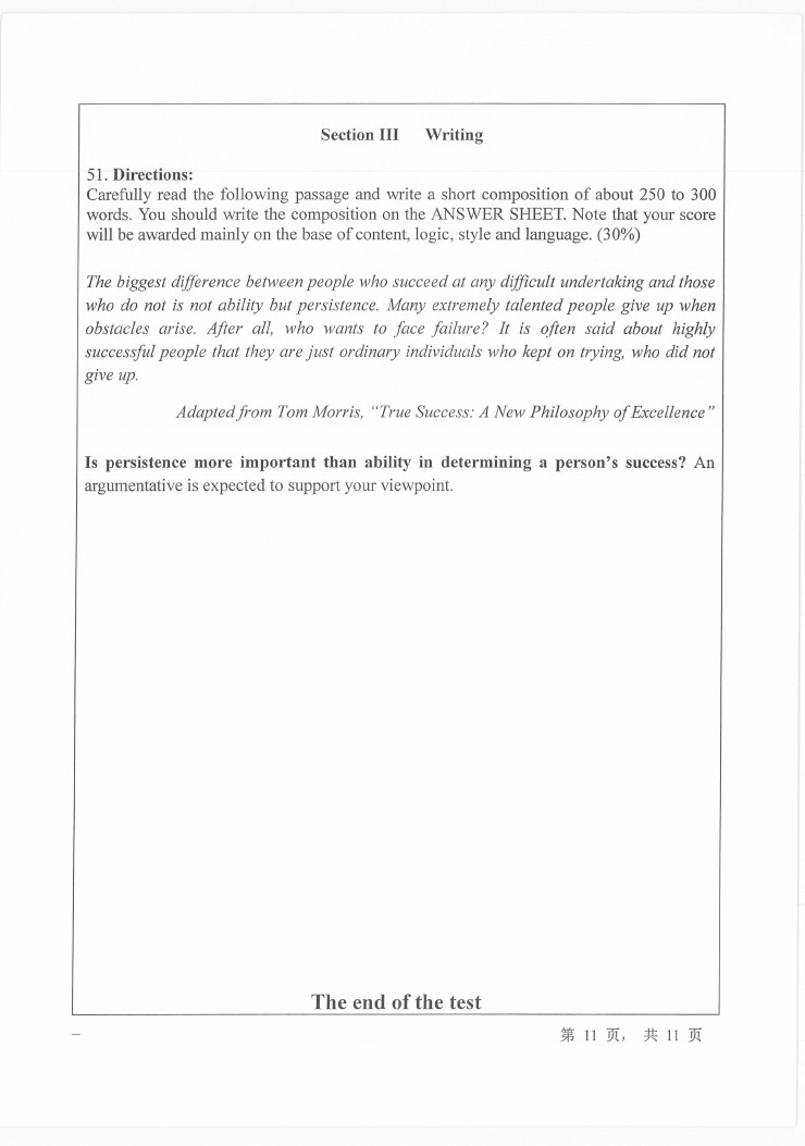 • 2016年北京外国语大学博士生英语入学考试试题