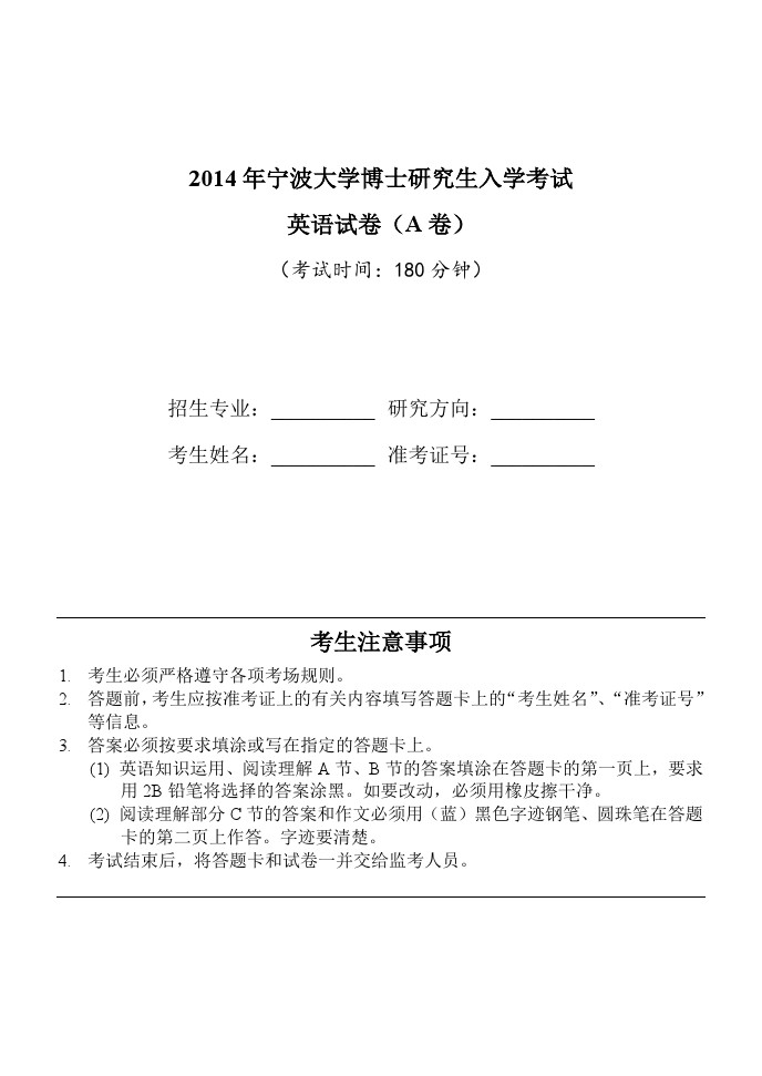 • 2016年北京外国语大学博士生英语入学考试试题