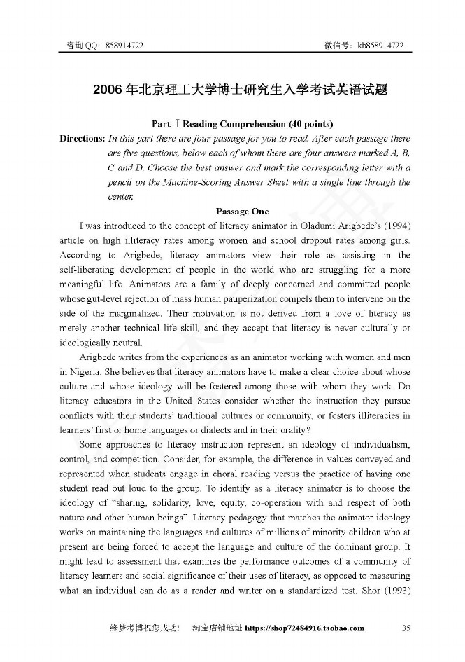 北京理工大学2004-2015考博英语试题及答案解析(33)