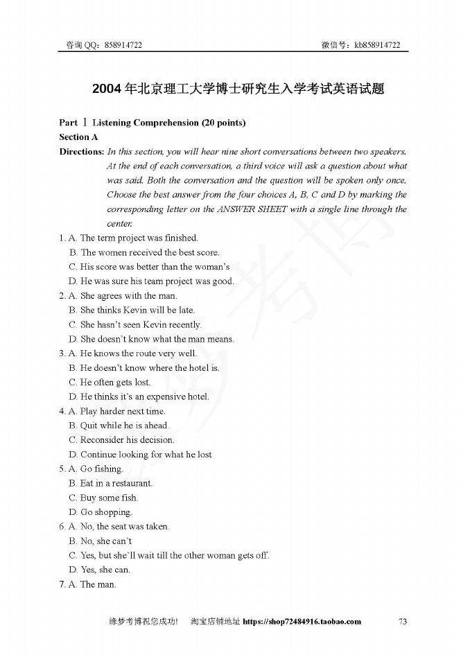 北京理工大学2004-2015考博英语试题及答案解析(71)