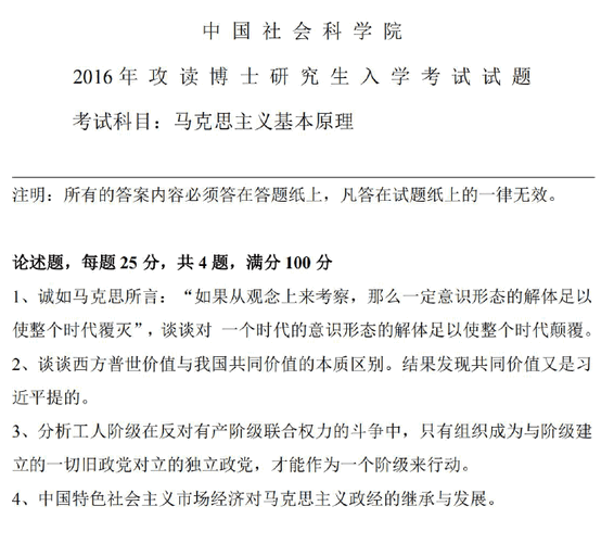 中国社会科学院马克思主义基本原理2010-2020年考博真题(4)