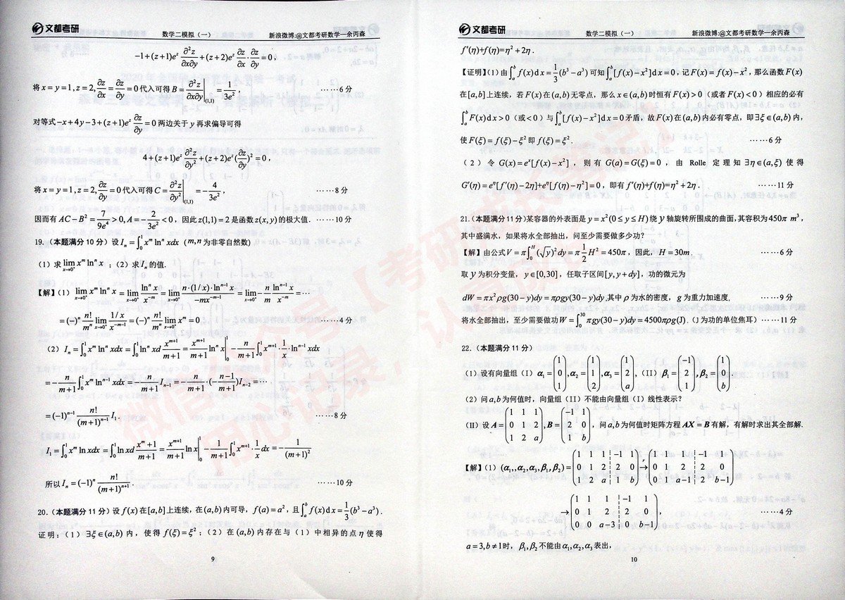 2020合工大森哥五套卷习题与答案考研数学二(11)