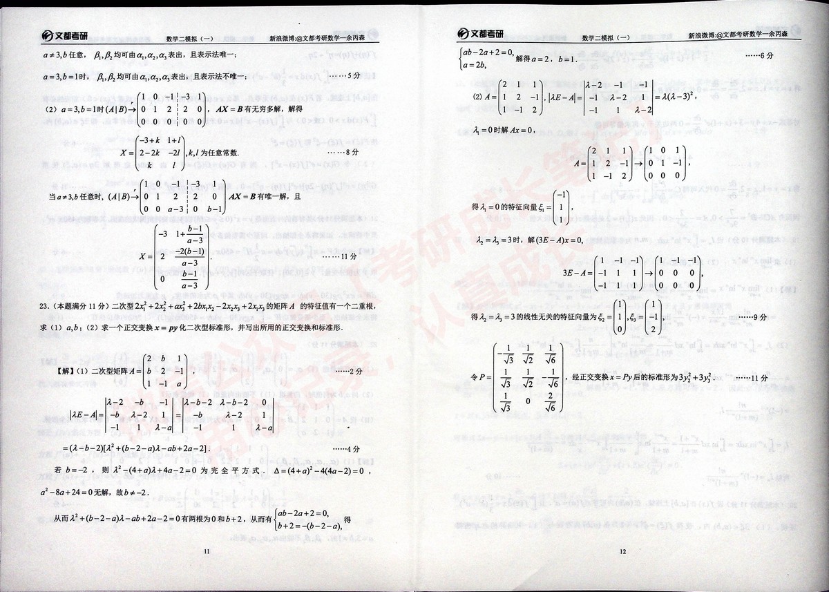 2020合工大森哥五套卷习题与答案考研数学二(12)