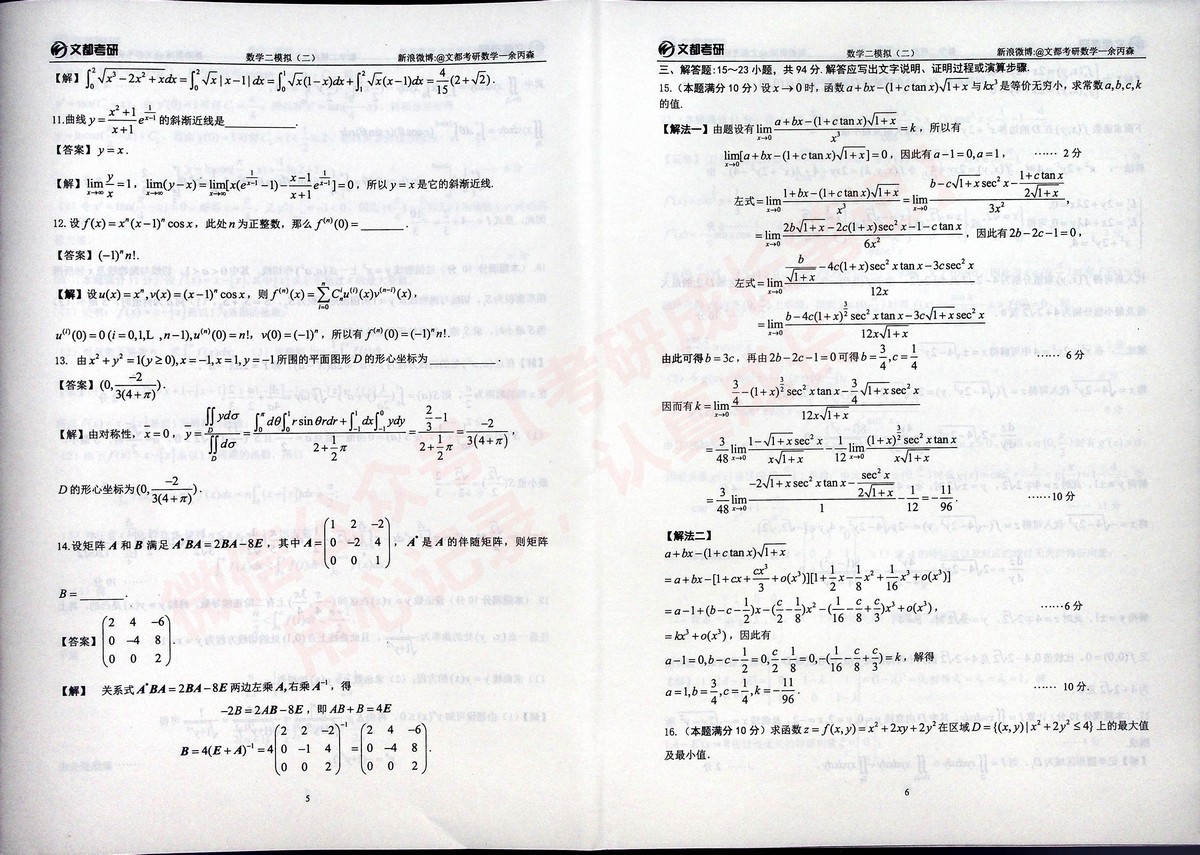 2020合工大森哥五套卷习题与答案考研数学二(15)