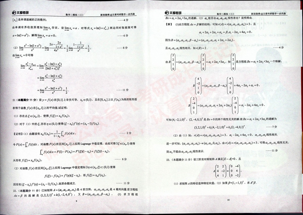 2020合工大森哥五套卷习题与答案考研数学二(23)