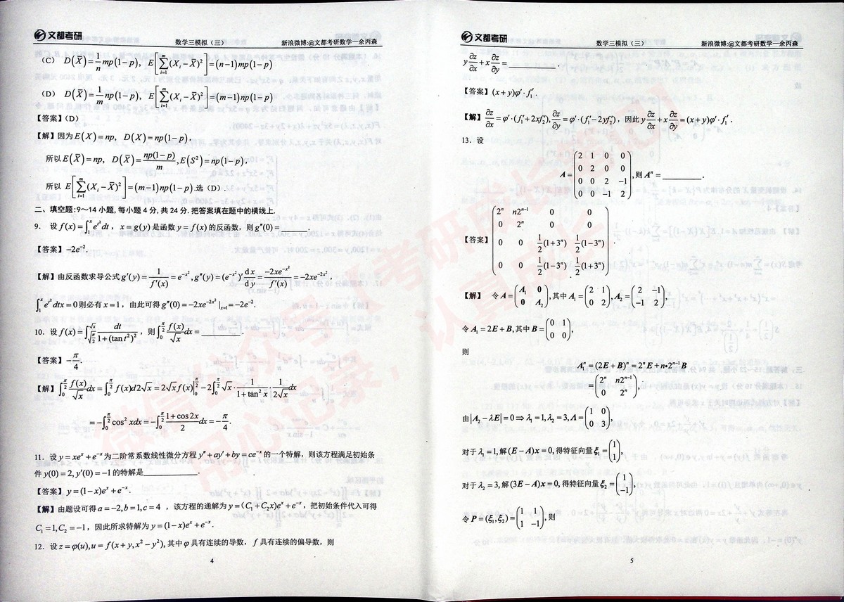 2020合工大森哥五套卷习题与答案考研数学三(25)