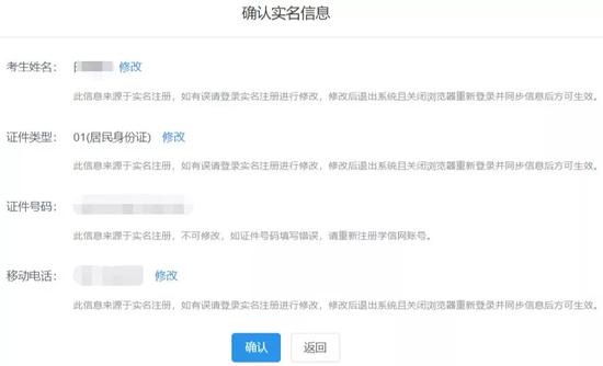 登录之后,需先确认实名信息(此信息来源于学信网实名注册信息,需仔细核对。)