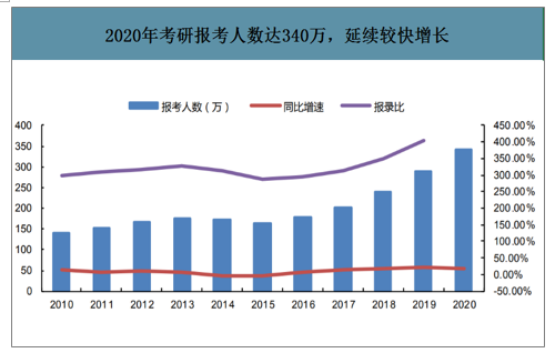 2020年考研报考人数再次出现大幅度增长,达到341万,相比2019年考研报名人数增长了50余万人,增幅超过17%。一般来讲,参加考试的人数越多,竞争也会越激烈,分数线也会相应升高。预计明年也就是2021考研报名人数能达到400万左右,是真正的恐怖!