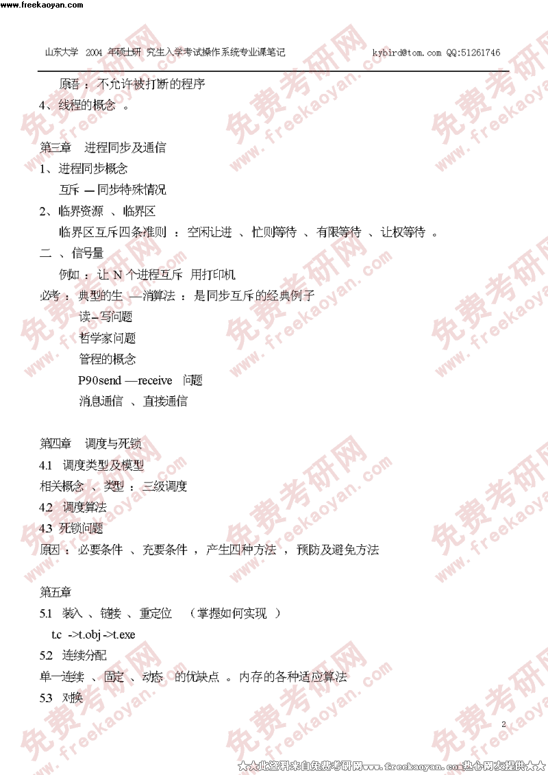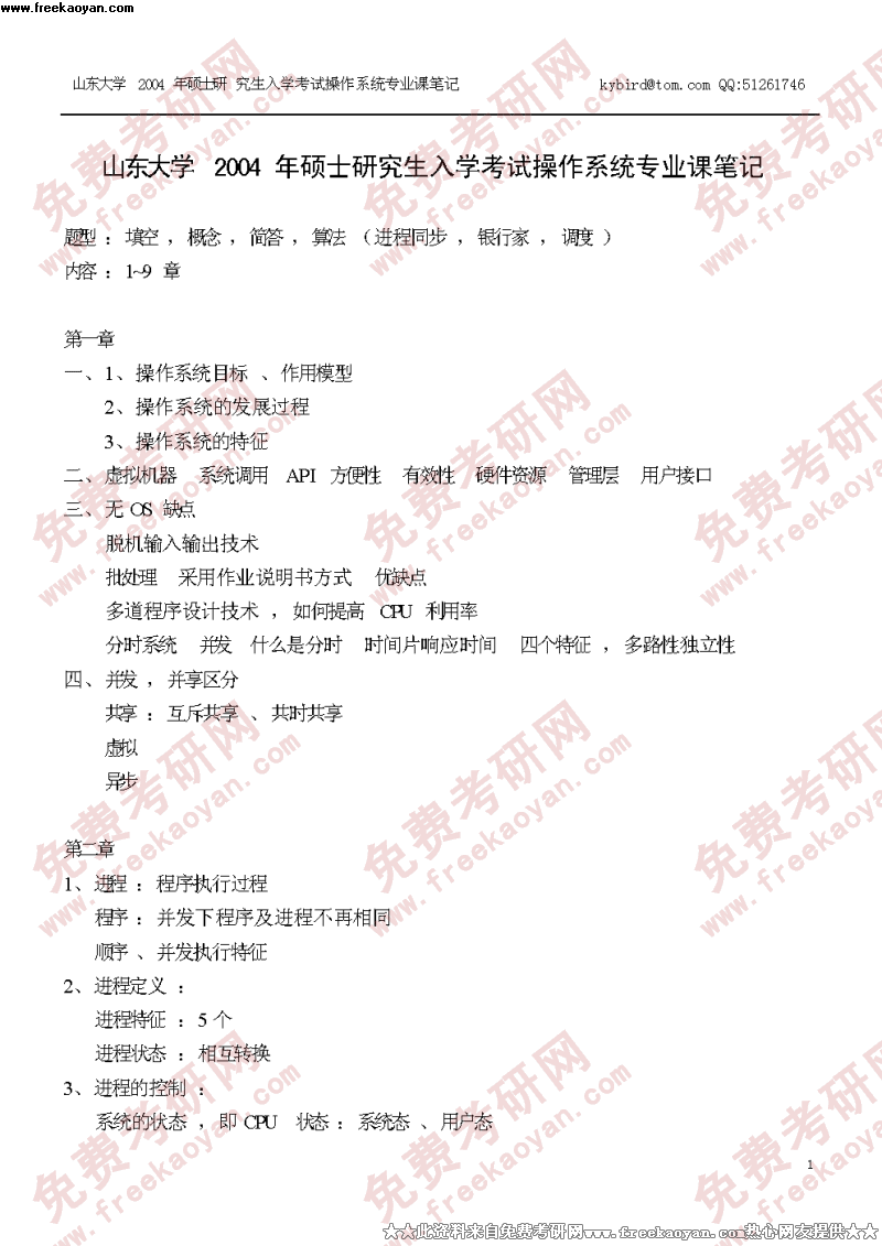 山东大学2003年操作系统笔记