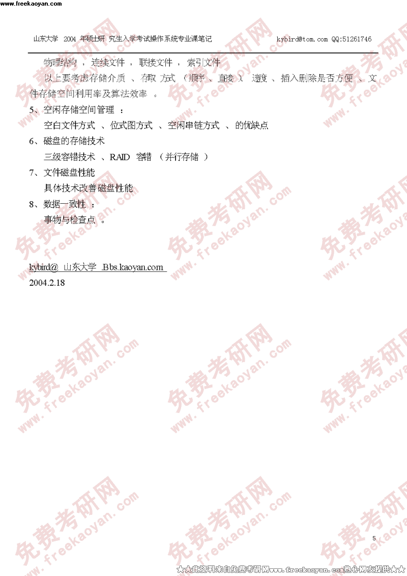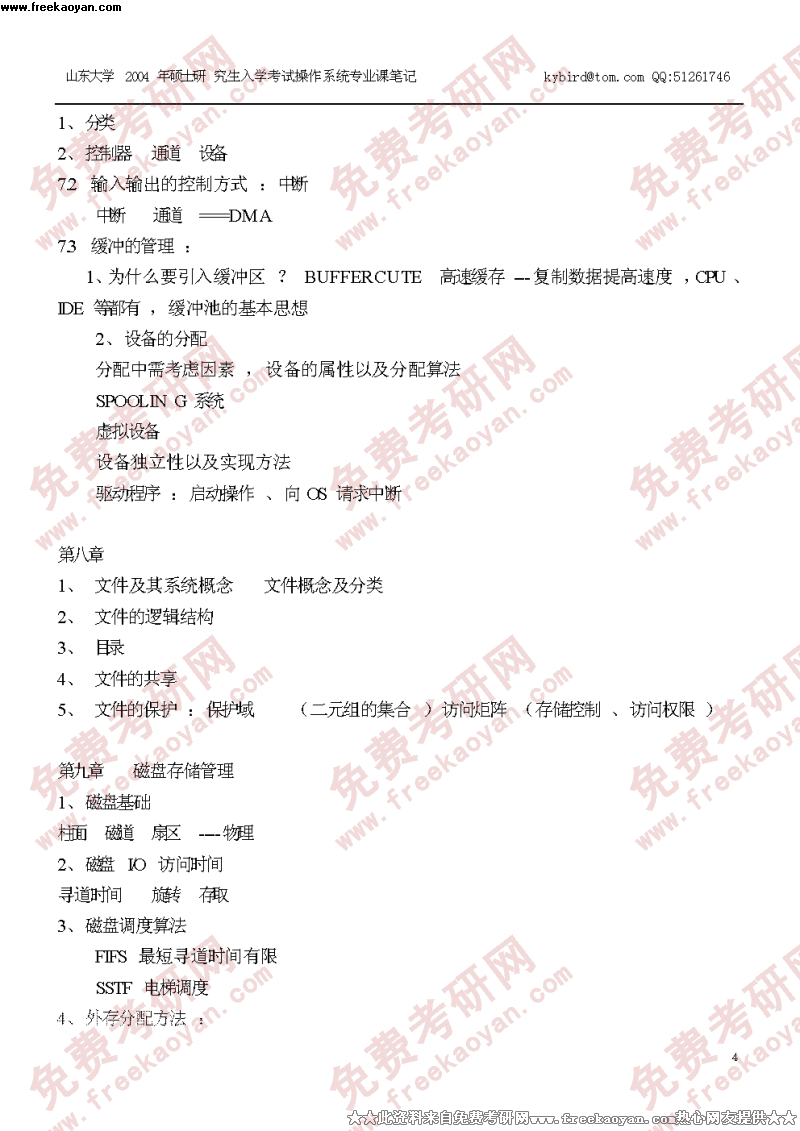 山东大学2004年操作系统笔记