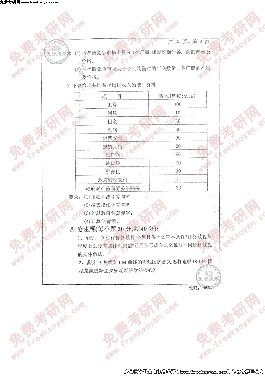 中南大学2004年硕士研究生入学考试西方经济学