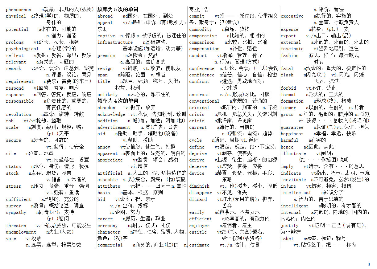 • 考研英语:高频词汇(部分)