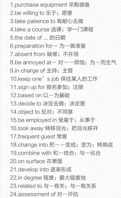考研英语冲刺复习,复习时间只有两个月多一点,大家要合理规划安排。英语复习词汇要跟上,及时查漏补缺。下面给大家梳理英语必背高频短语总结: