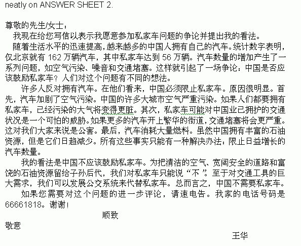 2003年朱泰琪考研英语作文范文第六集