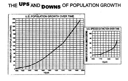 From these graphs, we can draw a conclusion that, with the growth of human population, the number of species has decreased rapidly in America, and some species have even vanished from our planet.