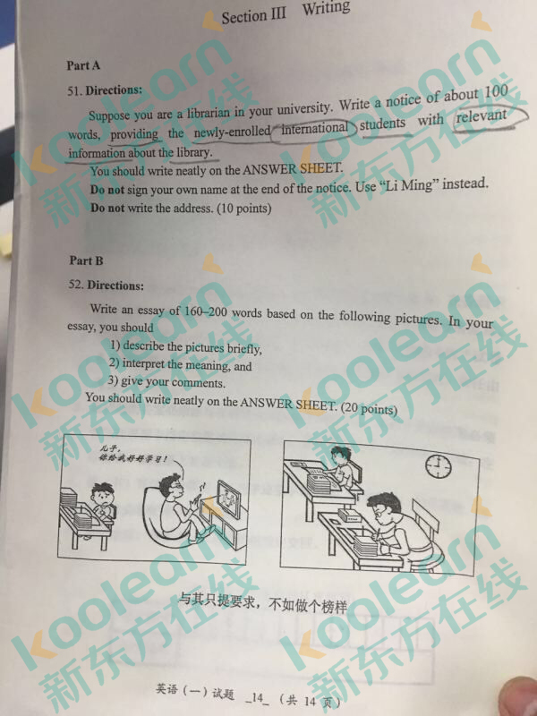 大家好我是朱伟,新东方在线速度非常快,第一时间拿来题目以后跟各位进行解析。  我非常完整的把考试的图片和我们自己小黄书当中以及的新东方在线最后三小时,写作课里所能用到的素材其中一部分截取给大家看。让大家相信,只要把自己所积累的素材打通来写,只要做到四个字,作文就不会太差,叫做自圆其说。 ...