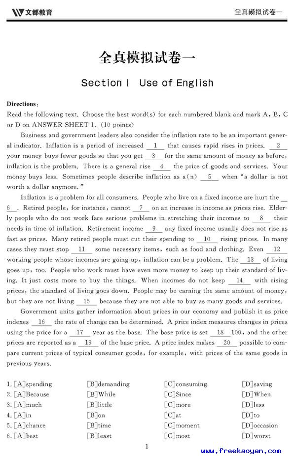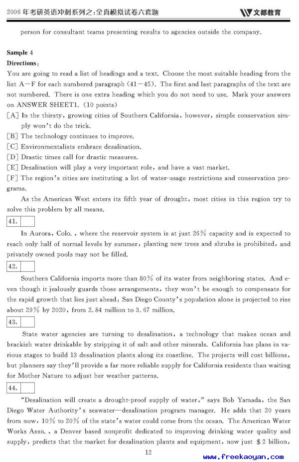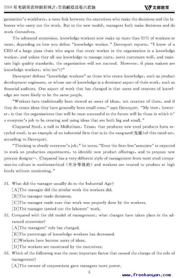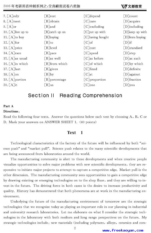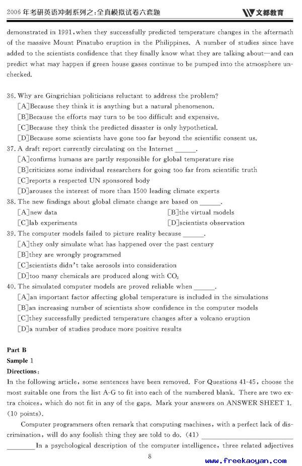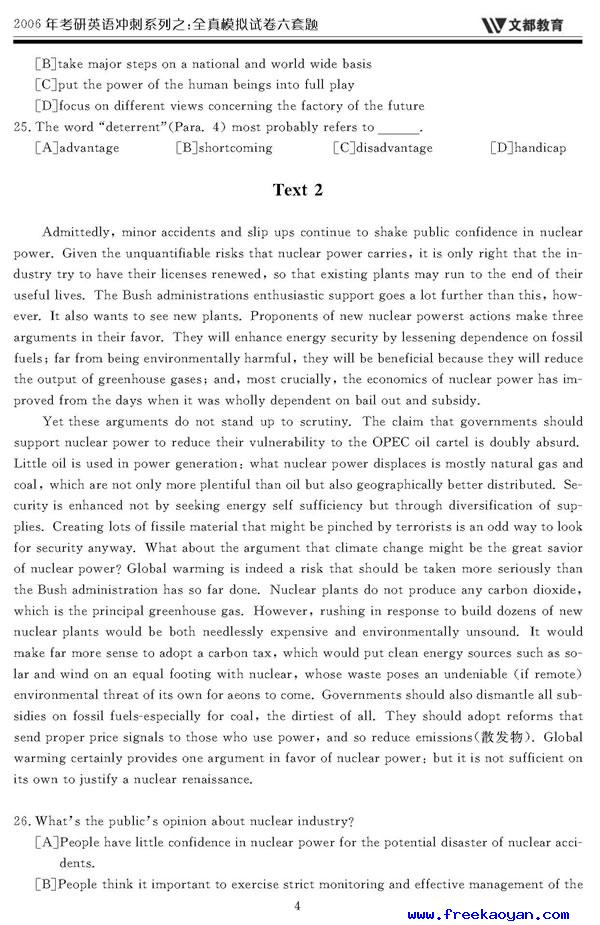 文都:2006年考研英语模拟试题(一)