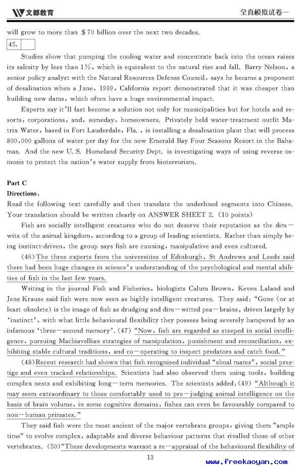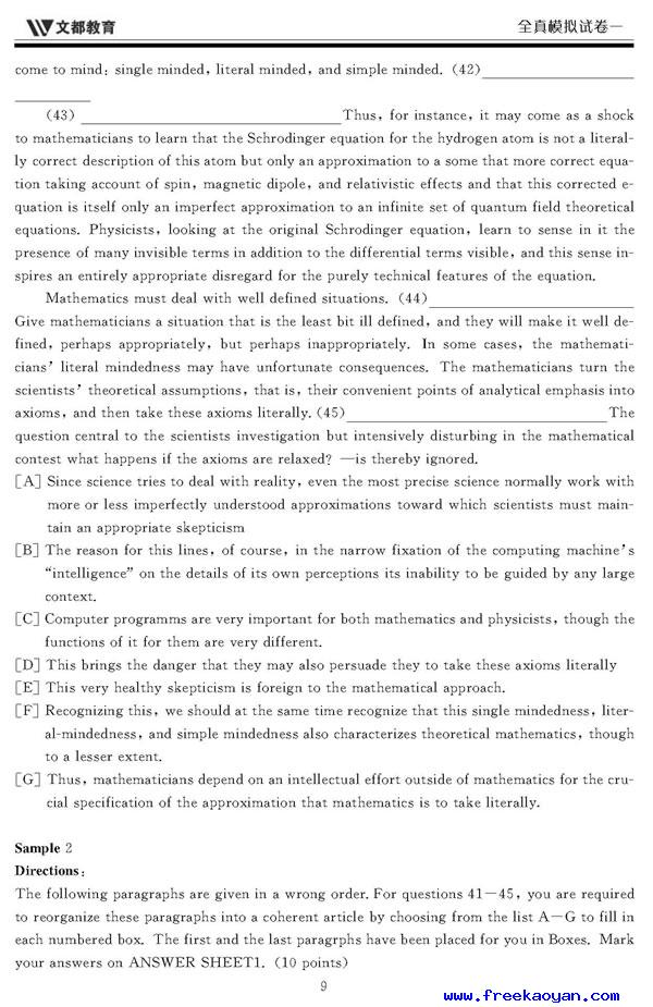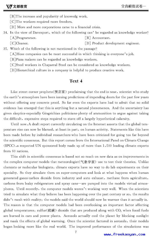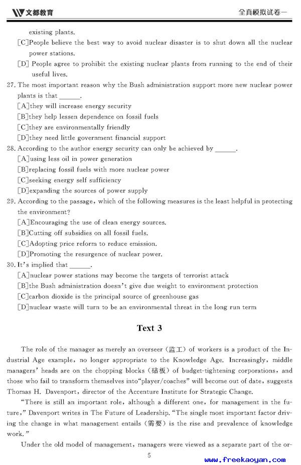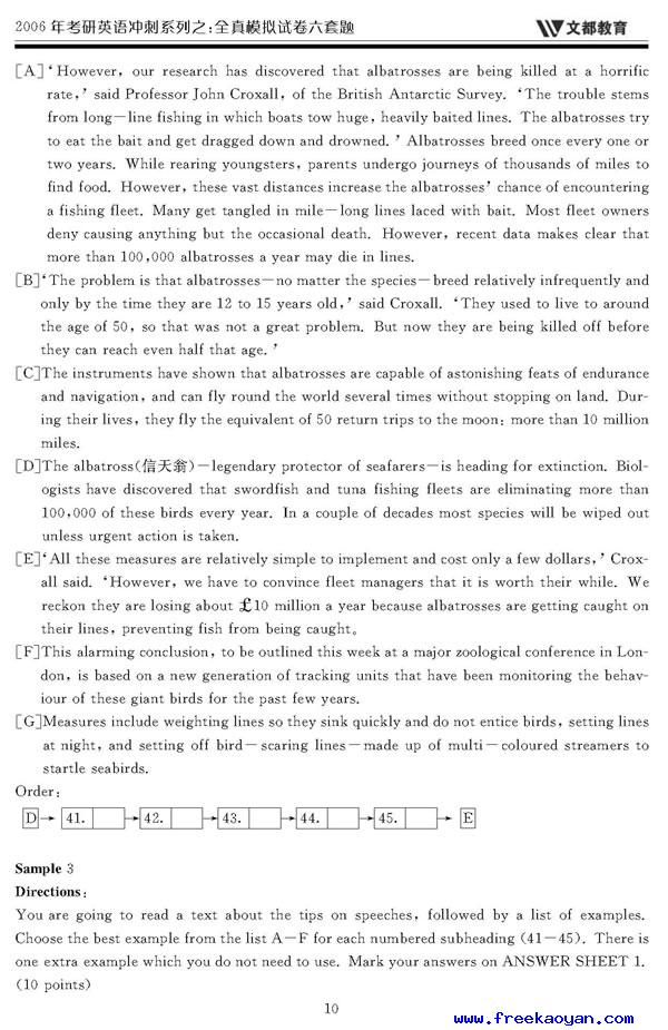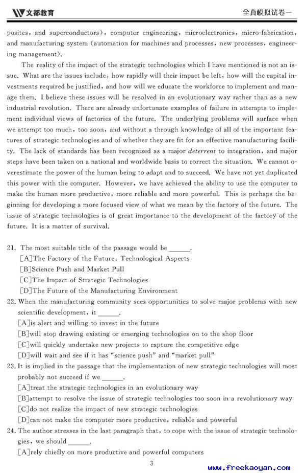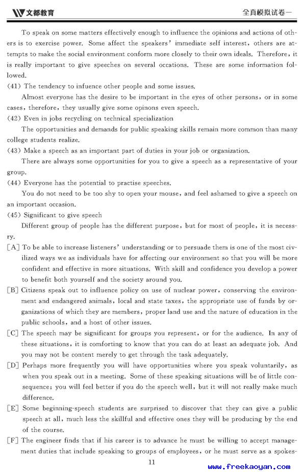 文都:2006年考研英语模拟试题(一)