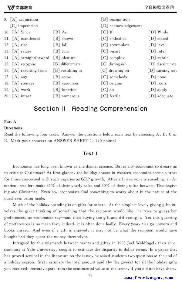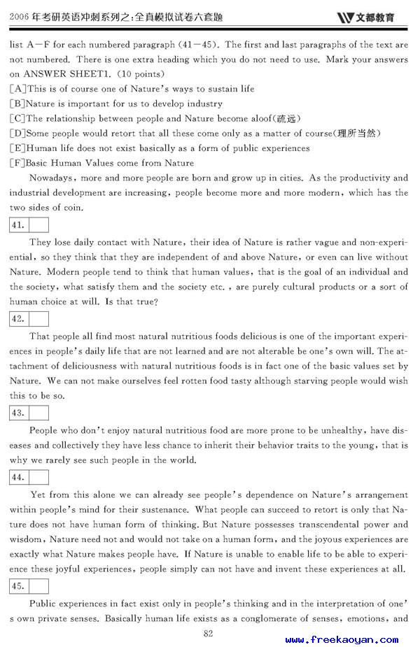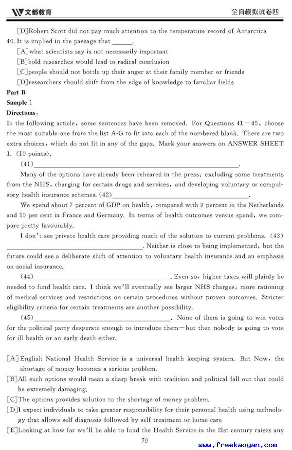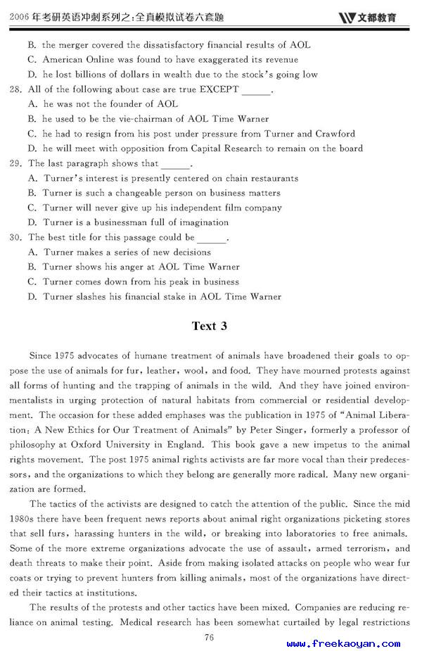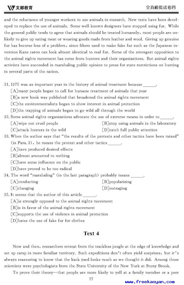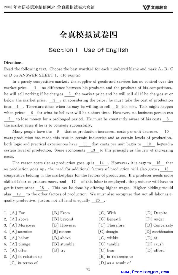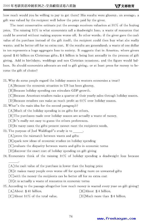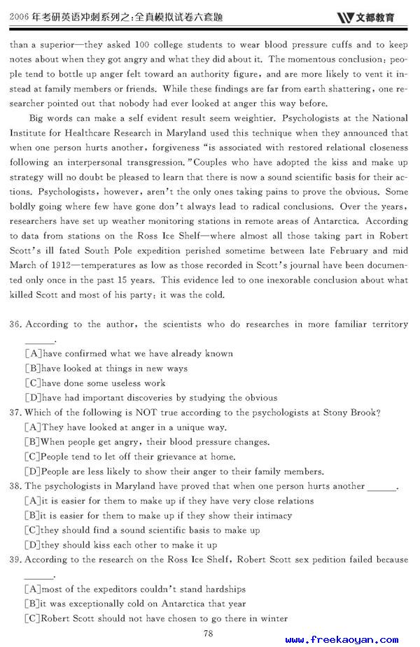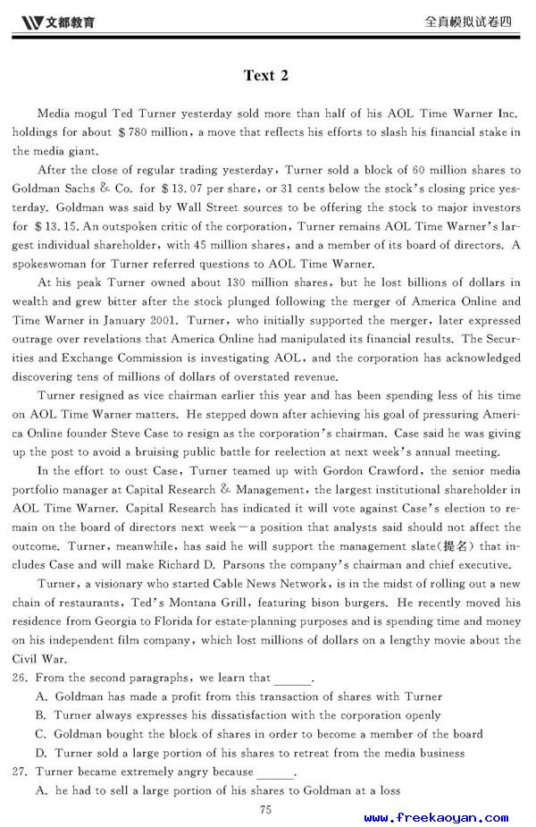 文都:2006年考研英语模拟试题(四)