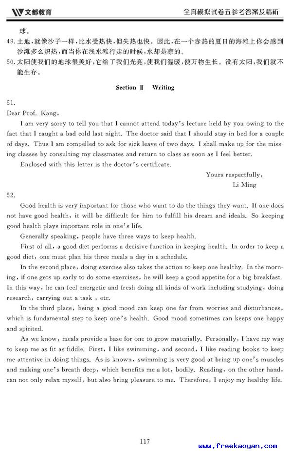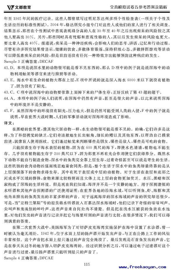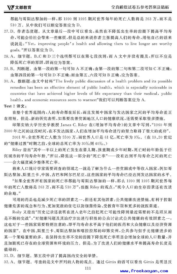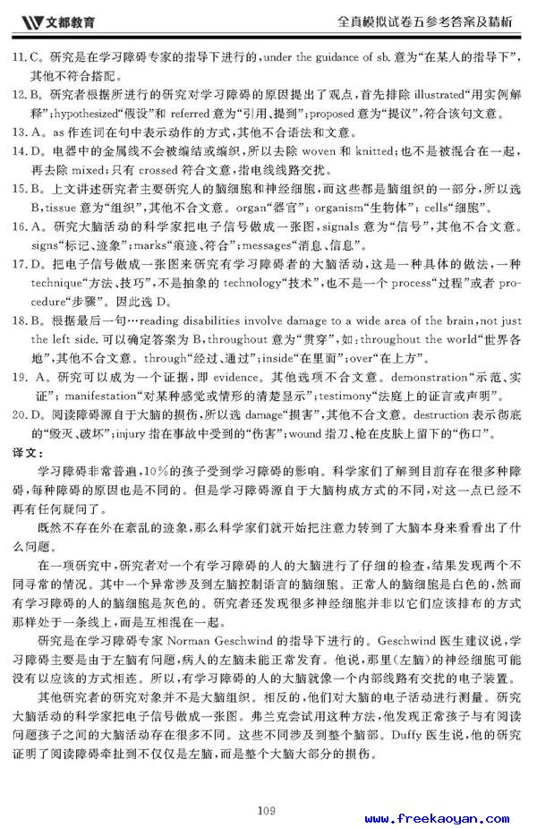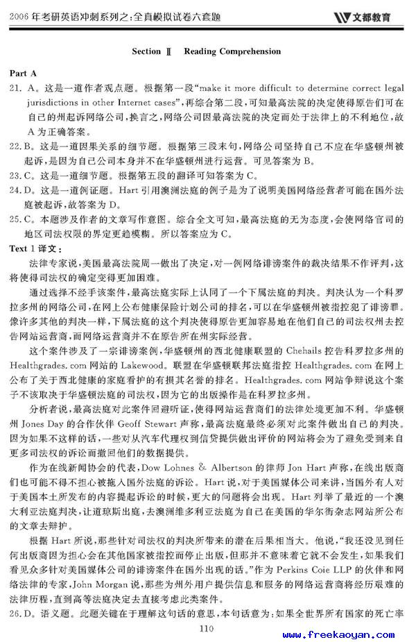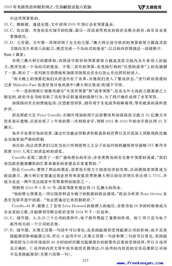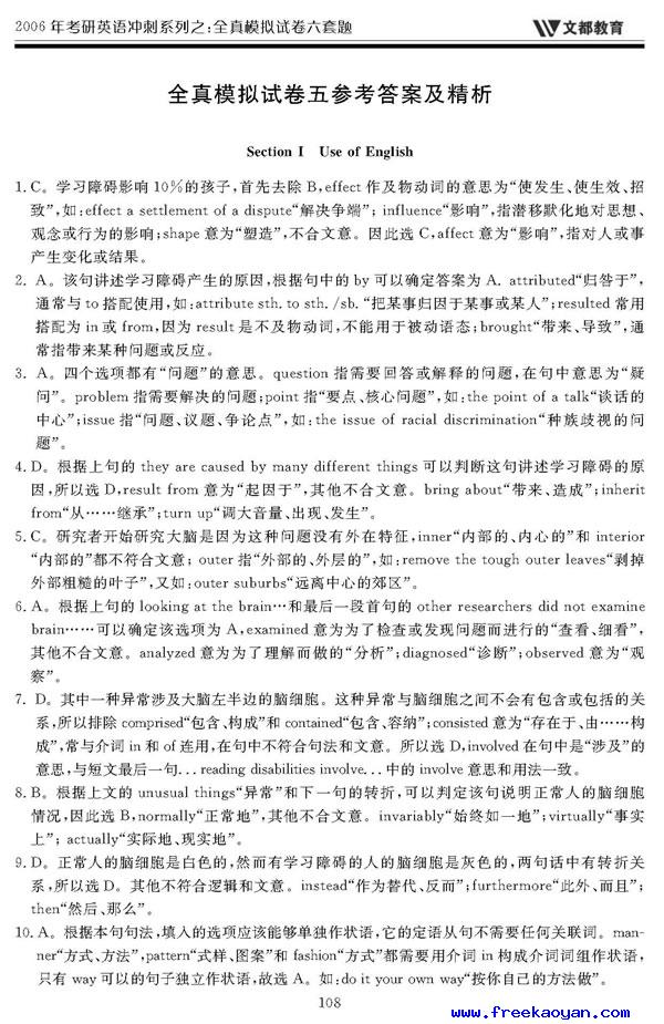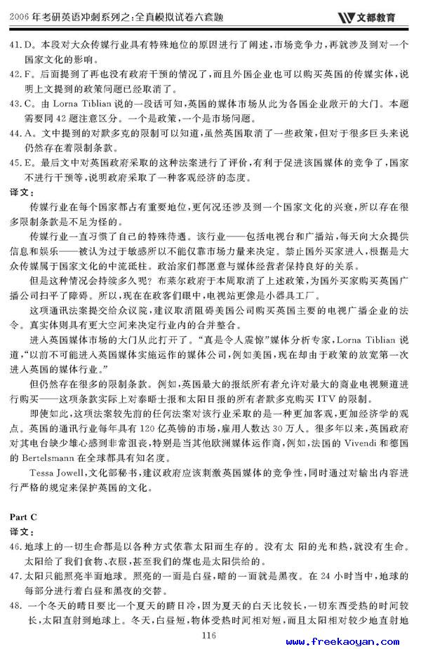文都:2006年考研英语模拟试题(五)答案