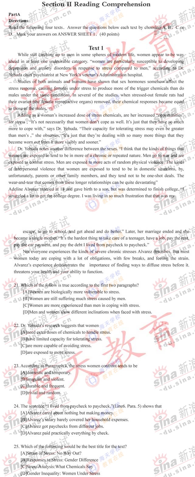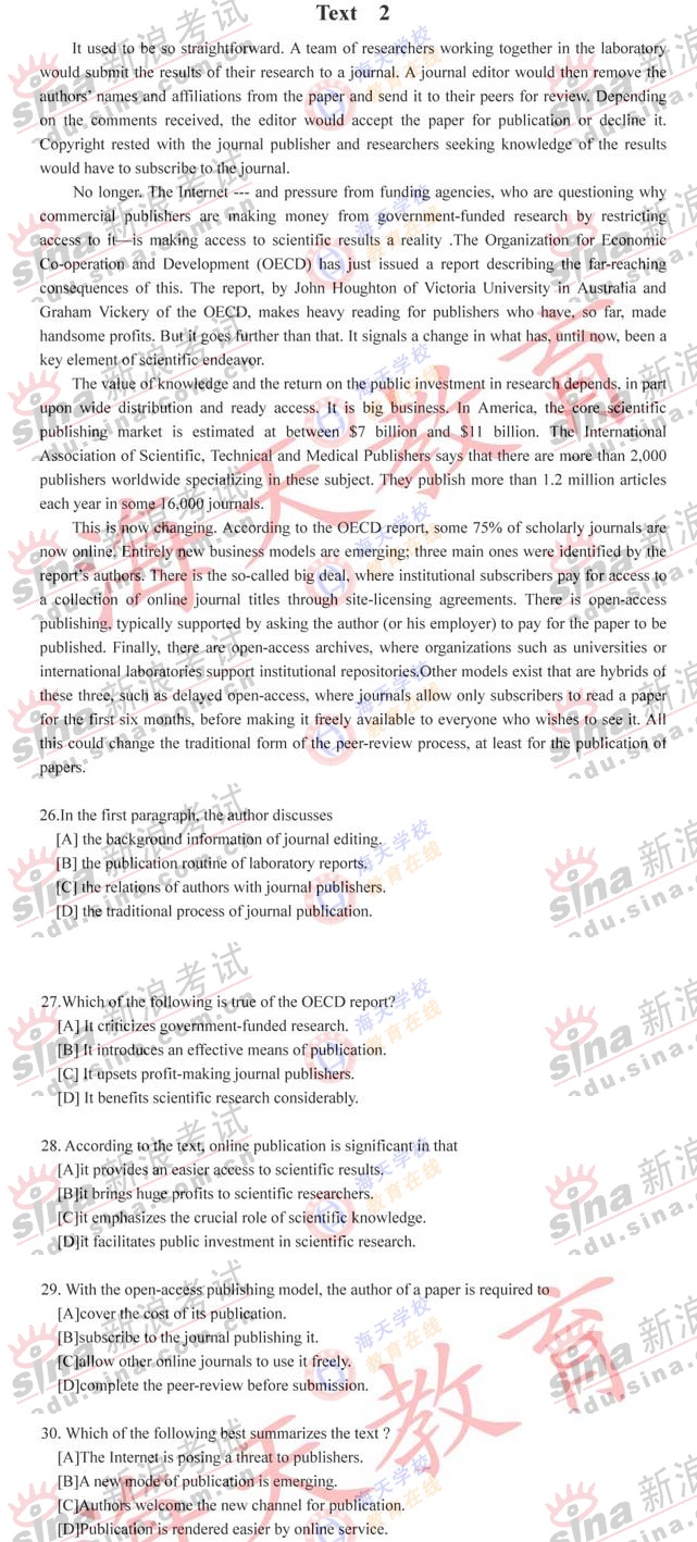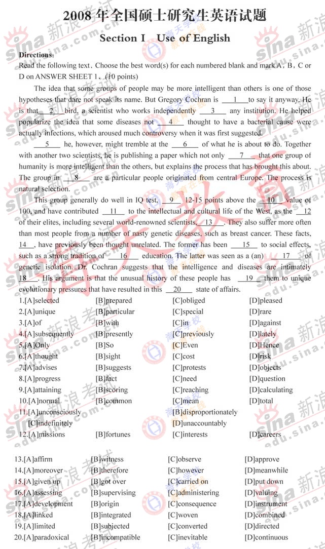 2008年硕士研究生入学考试英语真题及答案(官方版)