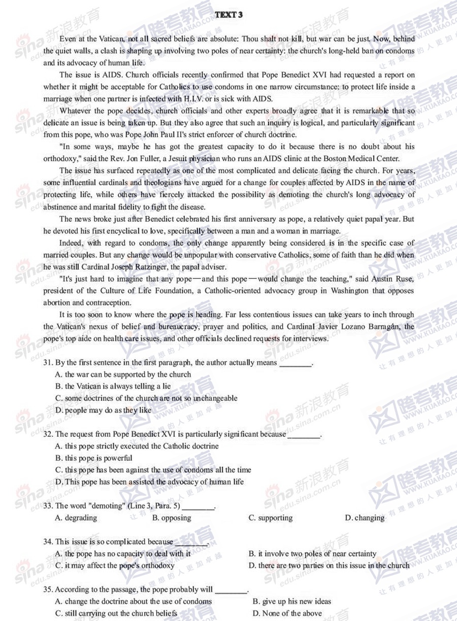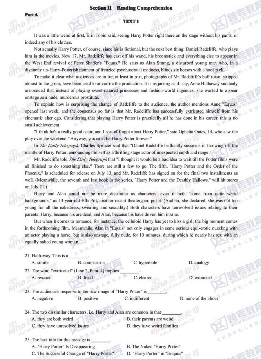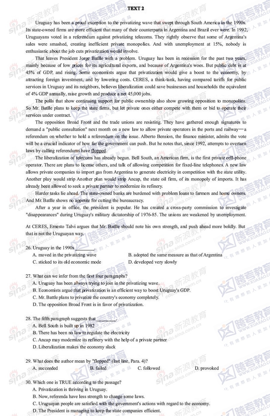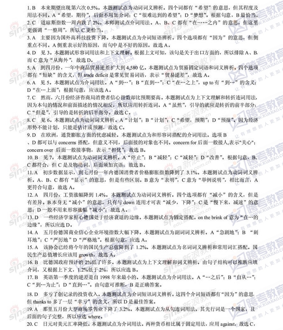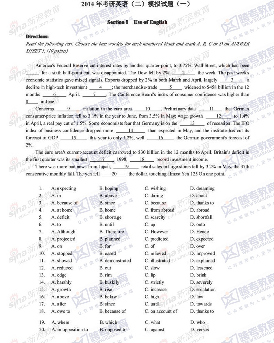 跨考教育2014年考研《英语二》模拟试题及参考答案(一)