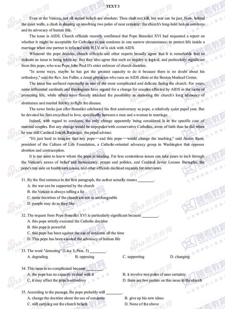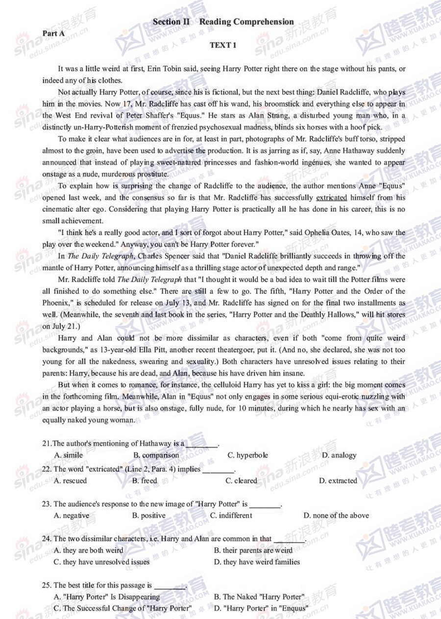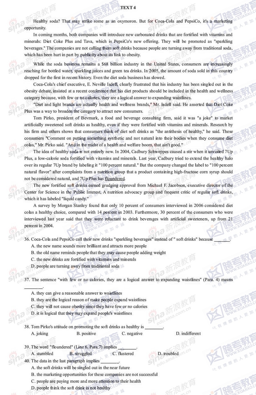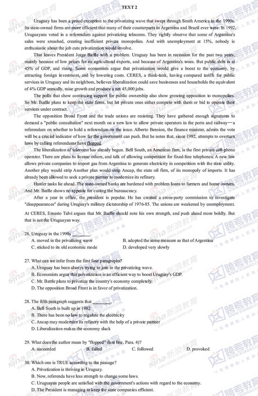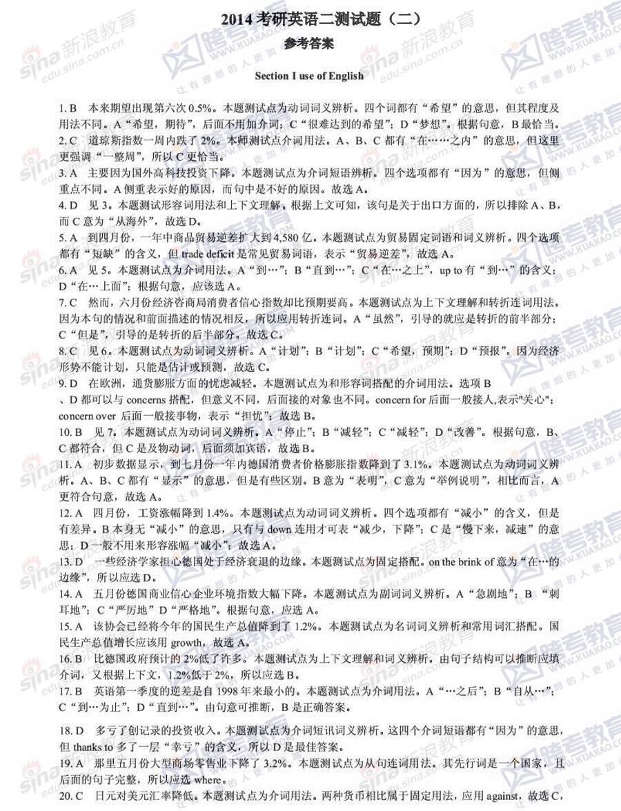 跨考教育2014年考研《英语二》模拟试题及参考答案(二)