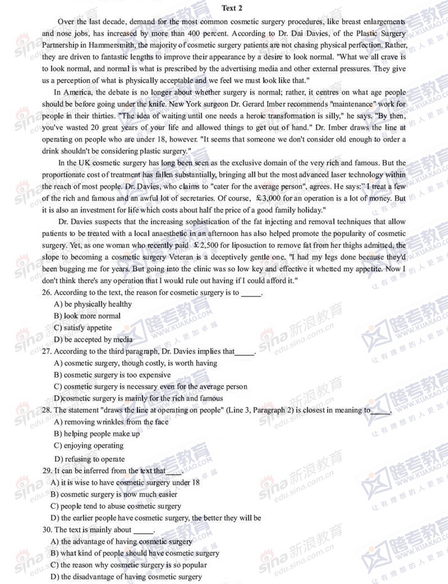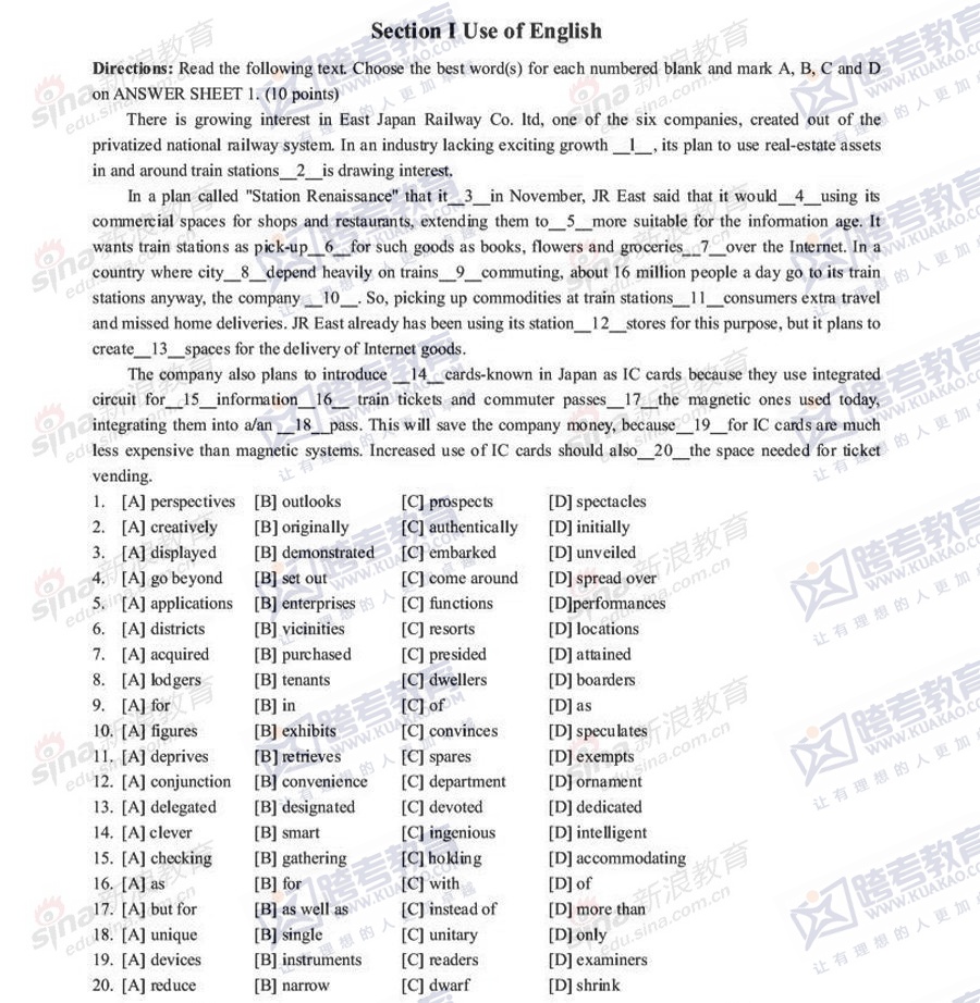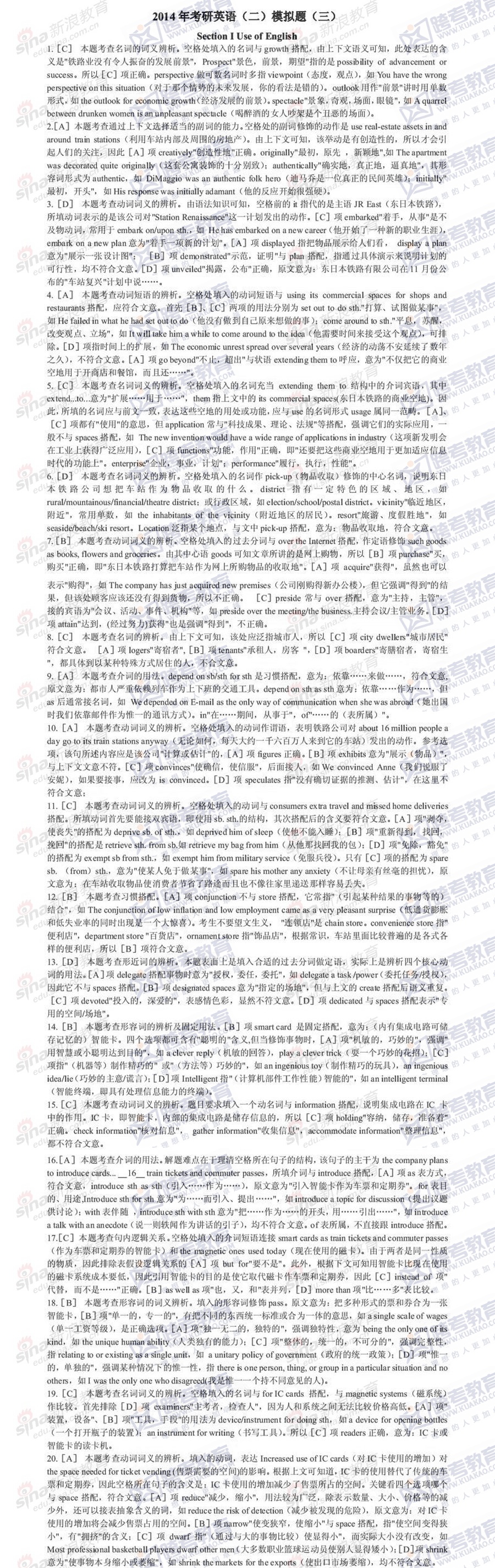 跨考教育2014年考研《英语二》模拟试题及参考答案(三)